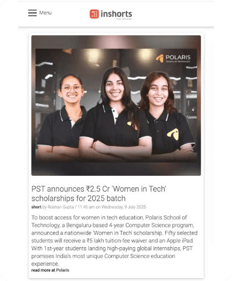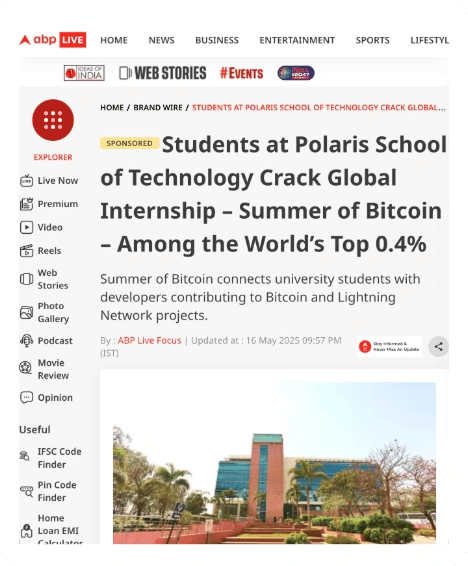 Ranked 1,328 in JEE Advanced, I chose Polaris over IIT Bombay to pursue Computer Science from Day 1. It was a bold call, but it validated itself when I cracked Google Summer of Code in my first year with a ₹2.55L stipend. At Polaris, I’m not just earning a degree; I’m building a high-growth tech career